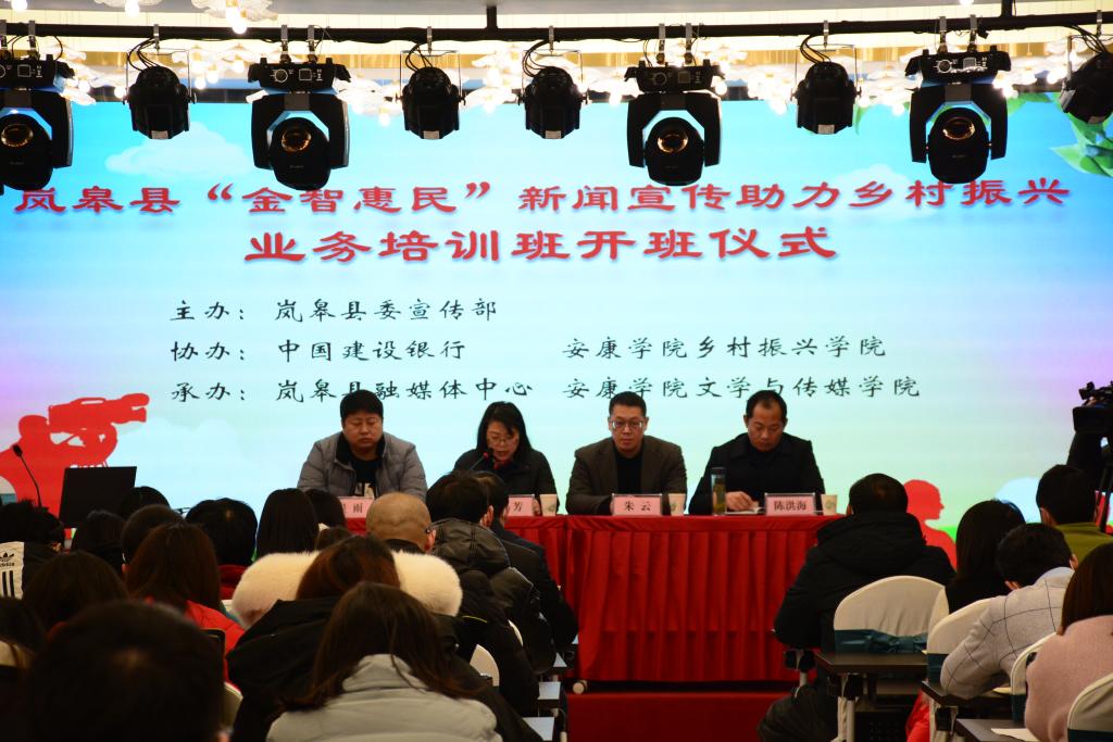 12月10日至11日,由岚皋县委宣传部主办,中国建设银行、太阳集团tcy8722乡村振兴公司协办,岚皋县融媒体中心、太阳集团tcy8722共同承办的“岚皋县‘金智惠民’新闻宣传助力乡村振兴业务培训班”在岚皋县成功举行。太阳集团tcy8722继续教育公司经理、乡村振兴公司副经理查芳,太阳集团tcy8722副经理朱云和岚皋县委宣传部常务副部长、融媒体中心主任陈洪海出席了开班仪式。