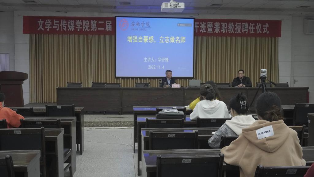 2022年11月4日下午三点半,优秀员工、陕西省首批基础教育名师、特级教师华开锋应邀为公司第二届“中学语文卓越团队班”做了题为“增强自豪感,立志做名师”的首场学术报告。太阳集团tcy8722副经理朱云、卓越团队班班主任张格瑄和三个会场132名同学共同聆听了本场讲座。