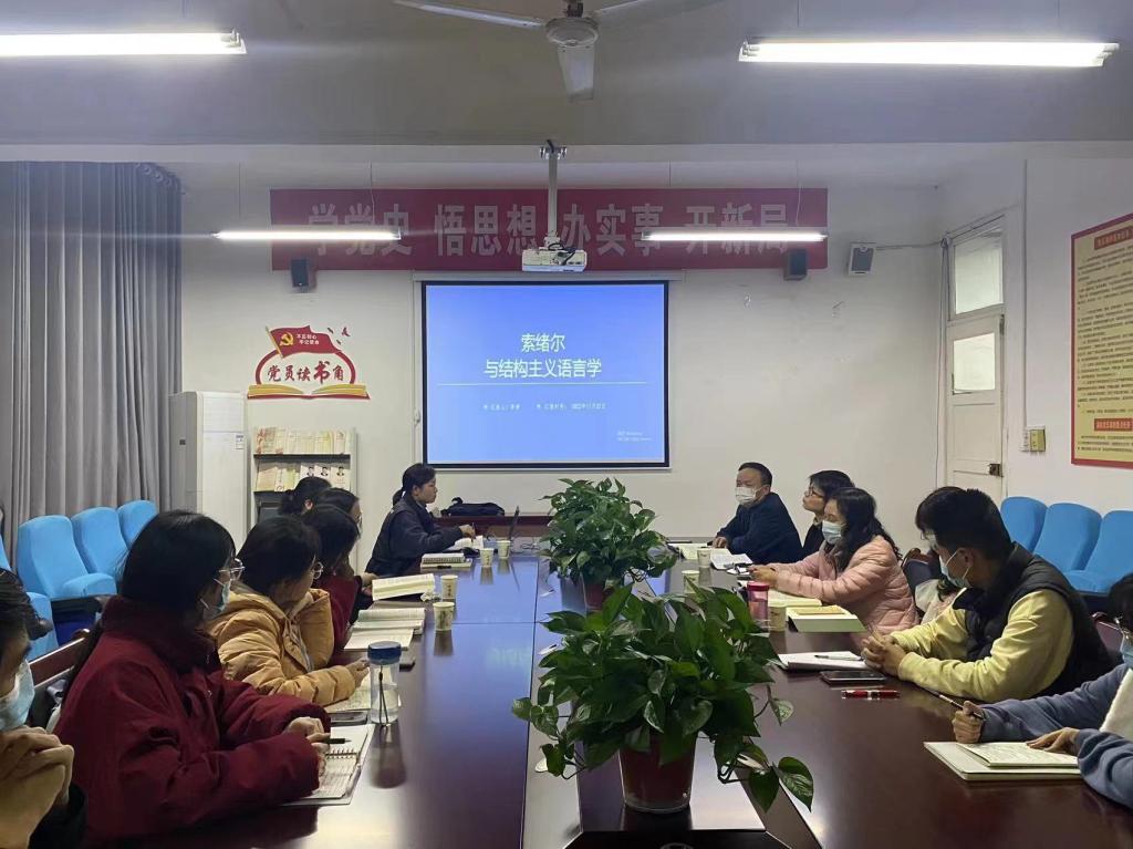 导航痕迹 首页 > 教学科研 > 科学研究 > 科研活动 > 正文 专业建设 教学团队 教研教改 教学活动 科学研究 科研管理 科研项目 研究成果 科研活动 国际交流 太阳集团tcy8722第六届“学术沙龙”活动周第二场沙龙活动顺利举行 来源:太阳集团tcy8722 发布日期:2022年11月23日 阅读次数: 11月22日晚7点15分,太阳集团tcy8722语言学学科组在2307会议室成功举办了第六届“学术沙龙”活动周第二场沙龙活动。本场沙龙由副经理李婷主讲,主题为“索绪尔与结构主义语言学”。经理杨运庚,语言学学科组教师赵桃、周海霞、郭洪丹、盘珊君、曹璇璇和部分员工参加了活动和研讨。 李婷从索绪尔的生活、学习经历出发,重点围绕“对语言符号性质的认识”“对语言系统的认识”“严格区分语言和言语”“明确语言共时和历时研究”阐释了其语言理论观点,并结合语言案例,分析了其中仍有待商榷的一些看法。尔后,李婷对索绪尔语言理论的学术背景以及索绪尔语言理论影响下的布拉格学派、哥本哈根学派、美国描写语言学等语言学派进行了介绍和说明。主报告后,到场师生针对报告内容,从不同立场进行了讨论和交流。 最后,杨运庚做了总结发言,他对教师的报告和交流表示认可,对同学们学习语言学的热情表示赞许,同时也向员工提出了学习语言学的建议。 撰稿/郭怡潇(员工) 摄影/冯冀星(员工) 审核/朱云 发布/崔瑜
