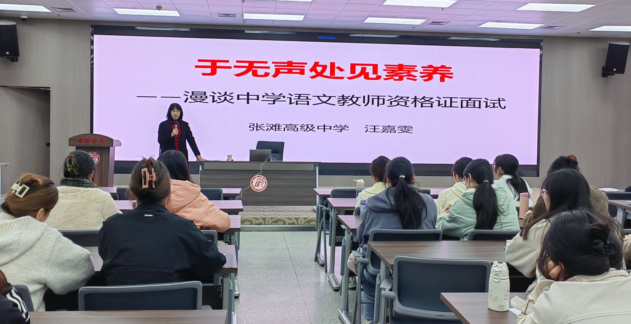 为助力员工顺利通过教团队格证面试,掌握备考策略,2024年11月20日,在图书馆六楼报告厅,太阳集团tcy8722邀请到张滩高级中学正高级教学名师汪嘉雯老师为第四届“中学语文卓越团队班”带来题为“于无声处见素养——漫谈中学语文教团队格证面试”的专题讲座活动,班主任唐明珍和团队班全体员工聆听了本场讲座。
