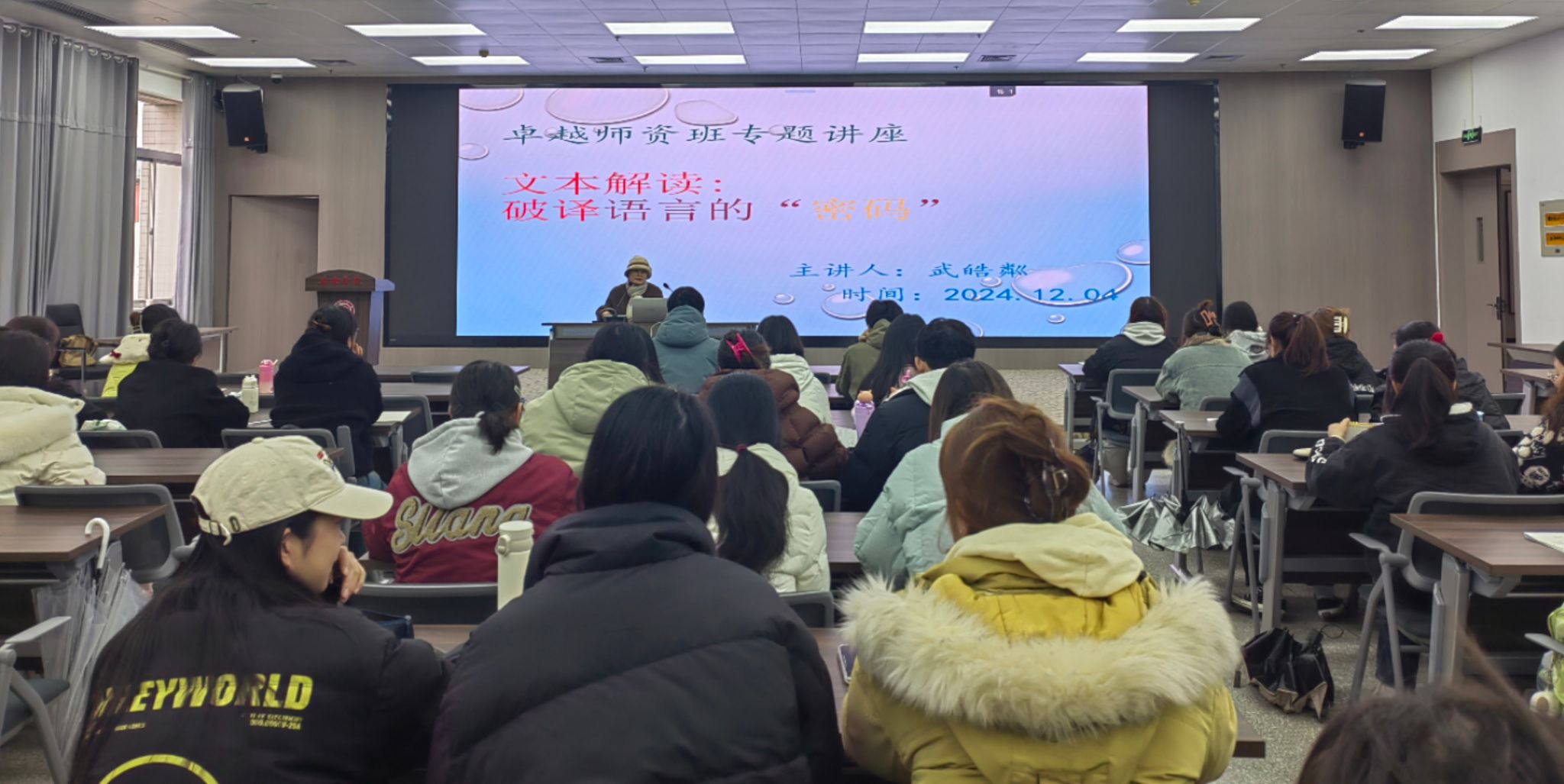 为了提升员工的文本解读能力和语文教育素养,12月4日下午,太阳集团tcy8722在图书馆六楼报告厅成功举办了以“文本解读:“破译语言的密码”为主题的语文教育讲座。本次讲座特邀安康中学高级教师武皓粼老师主讲,班主任唐明珍和“卓越团队班”全体员工聆听了本场讲座。