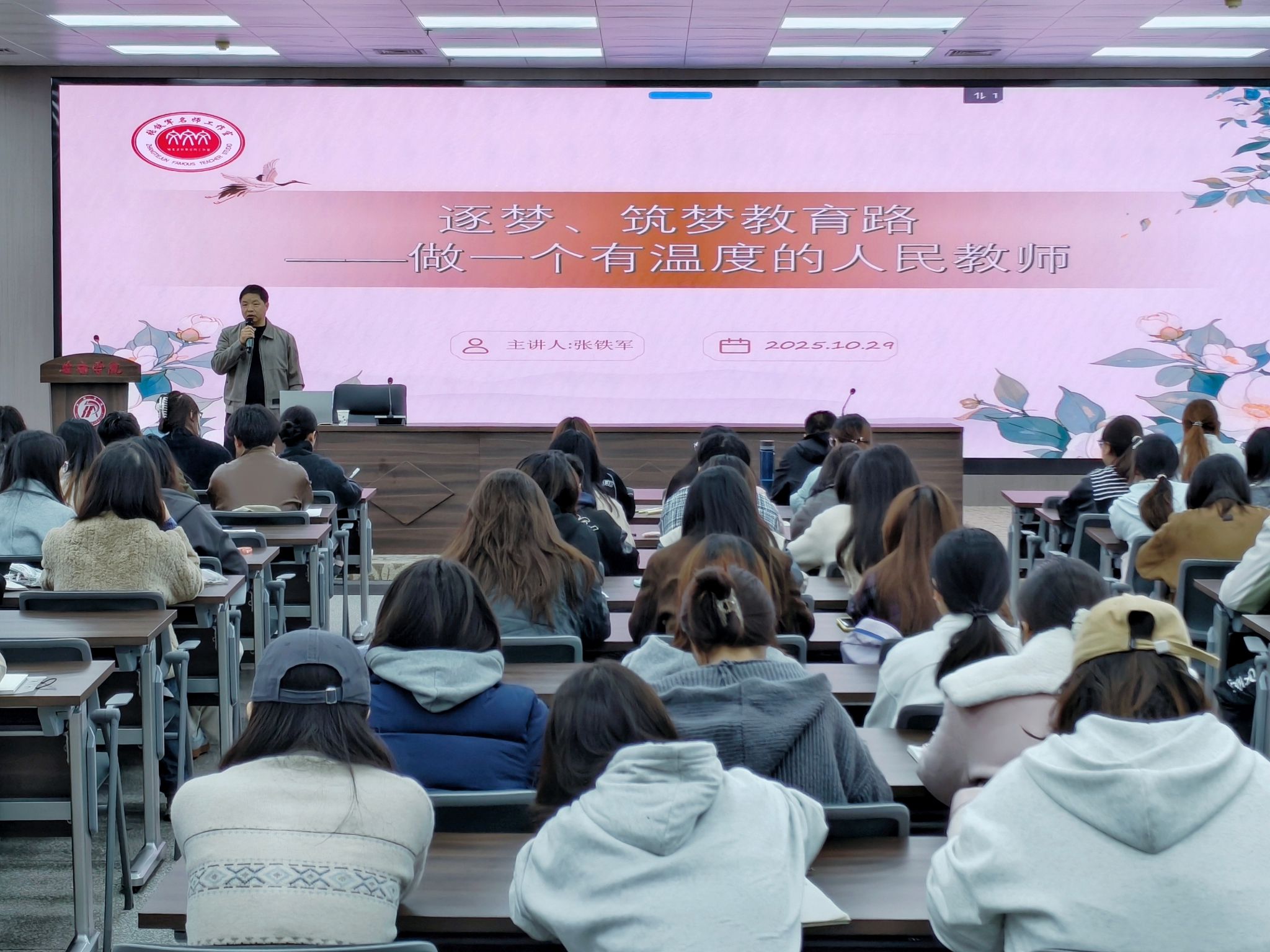 仪式结束后,陕西省教学名师张铁军老师做题为“逐梦、筑梦教育路——做一个有温度的人民教师”的首场讲座。