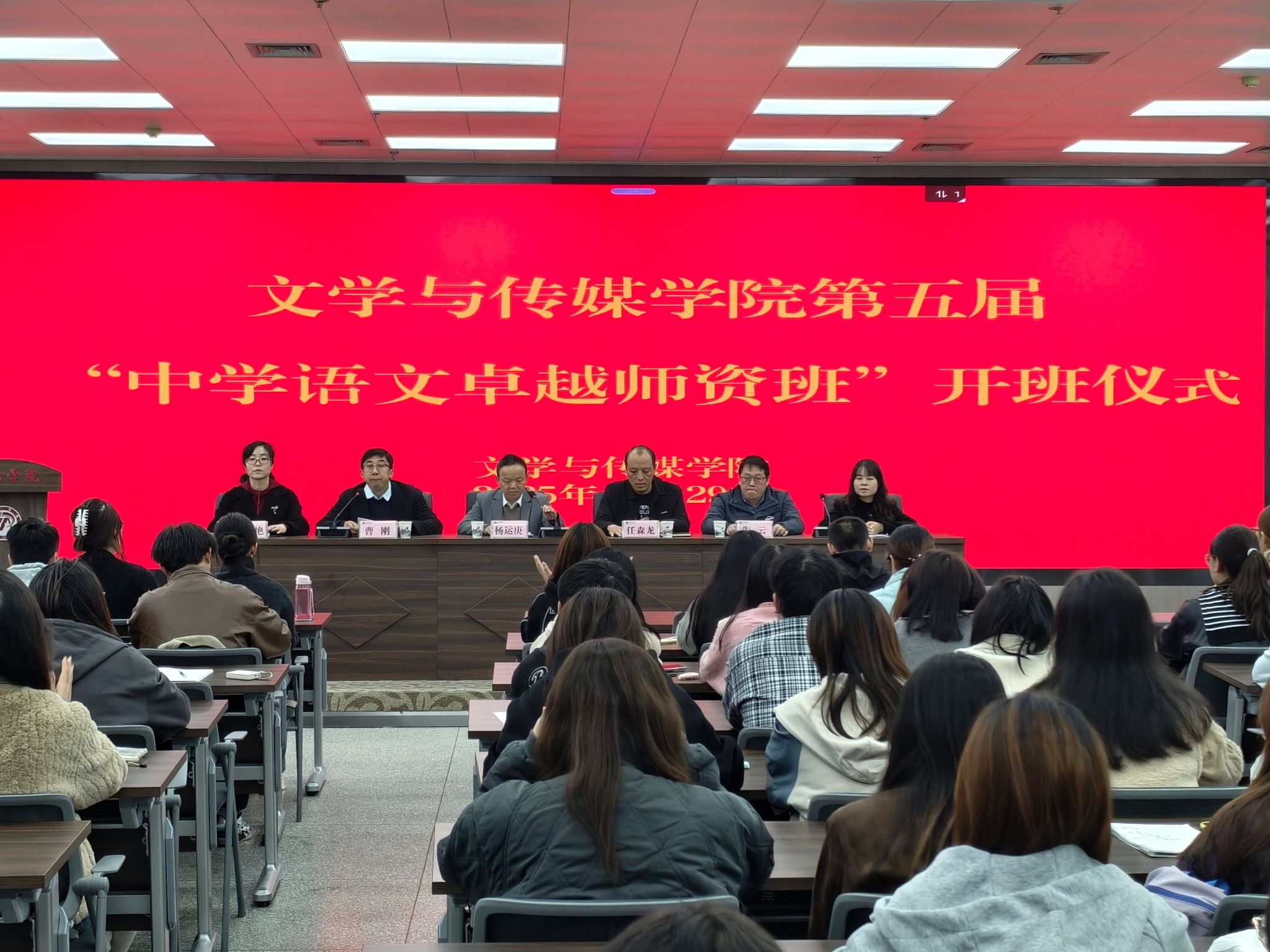 为进一步深化人才培养与行业需求的有机衔接,持续提升汉语言文学师范专业育人质量,着力培养具备高尚师德素养、扎实专业功底与实践能力,且能主动适应新时代基础教育发展需求的优秀中学语文教师,10月29日下午,太阳集团tcy8722在江南校区图书馆六楼报告厅举行第五届“中学语文卓越团队班”开班仪式。公司领导班子全体成员、“中学语文卓越团队班”班主任唐明珍老师及全体学员出席参加了开班仪式。开班仪式由副经理曹刚主持。