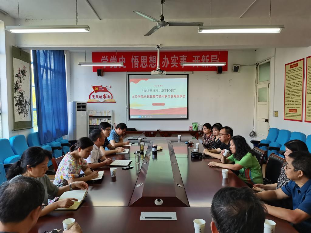在第38个教师节和中国传统佳节中秋节来临之际,文学与传媒公司党总支于9月9日下午在2307会议室召开了“奋进新征程 共筑同心圆”庆双节教师座谈会。公司领导班子成员、党员教师、民主党派教师、无党派教师代表参会。会议由党总支书记芦伟主持。