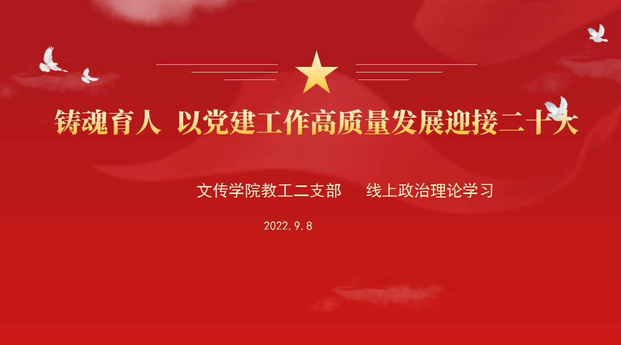 9月7日下午,公司教工第二党支部在线上召开“铸魂育人,以党建工作高质量发展迎接二十大”理论学习会。党支部全体党员参加会议。会议由党支部书记邸玲主持。